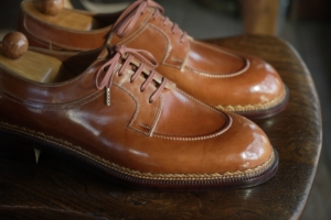 お客様にサイズ、革、デザインをお選びいただき、その人のためだけに製作される一足です。
